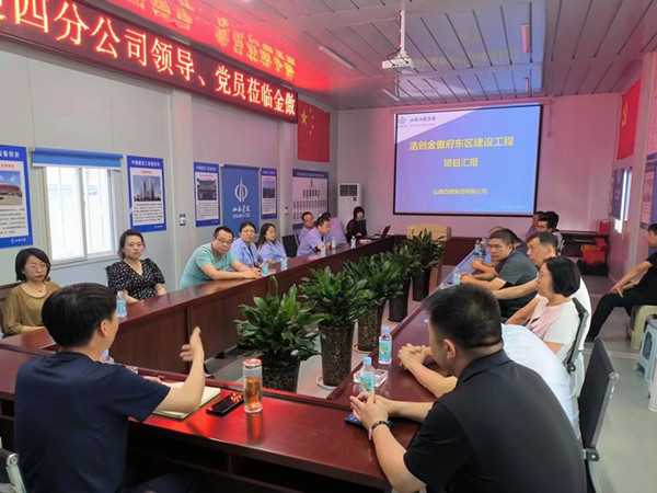 全体党员在金傲府项目部参加项目情况汇报会,并进行项目指导