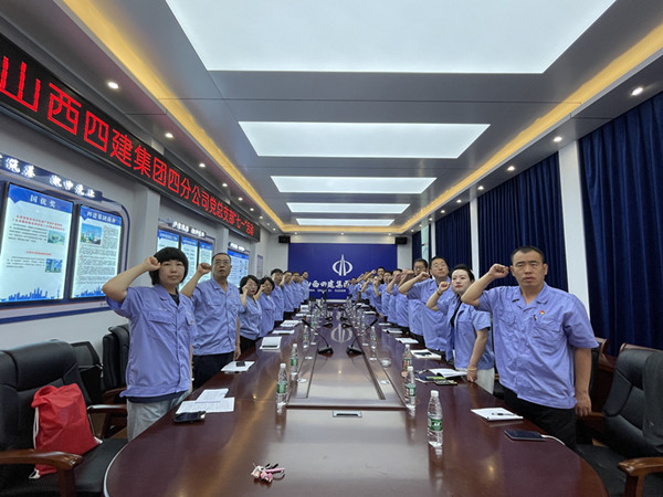 7月1日上午,分公司党总支在尧都文化艺术中心项目部召开“喜迎二十大 奋进新征程”七·一主题党日活动,全体党员面对鲜红的党旗,自行规范佩戴党徽,高举紧握的右拳,重温入党誓言。誓言声声掷地,初心赤诚不变,让广大党员干部进一步接受了爱国爱党教育,也更加坚定了跟党走的信念。