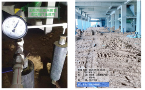 无明显下降,回填合格               采暖管道打压合格,实施举牌验收