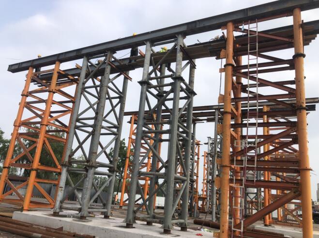 左幅支架安装全部完成。分配梁安装完成40%。调节管安装完成20%。