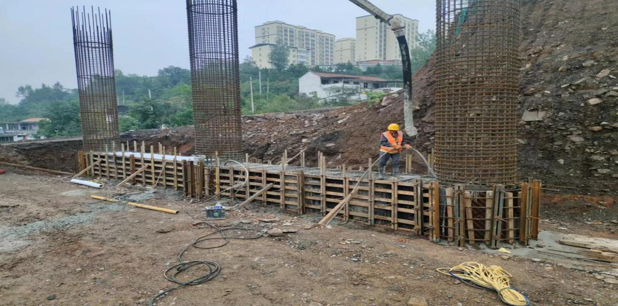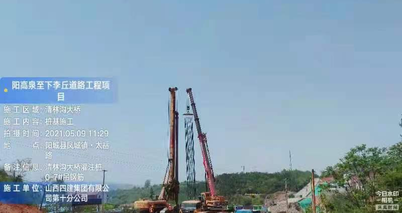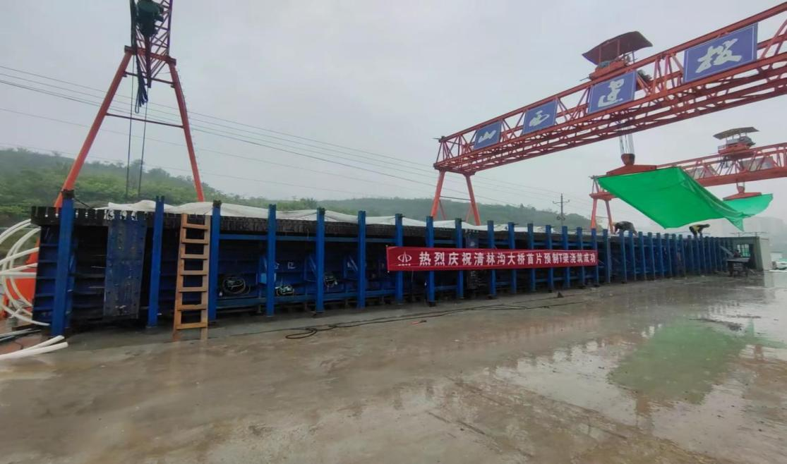 清林沟大桥全长277m,桥梁宽度41m,最大墩高24m,上部结构采用先简支后连续预应力混凝土连续T梁;下部结构采用柱式墩、柱式台,灌注桩基础。截止目前,下部结构64根桩基、48根墩柱、20片盖梁全部完成,上部结构162片T梁预制、架设完成,现浇(横隔梁、连续段)、湿接缝浇筑完成50%。