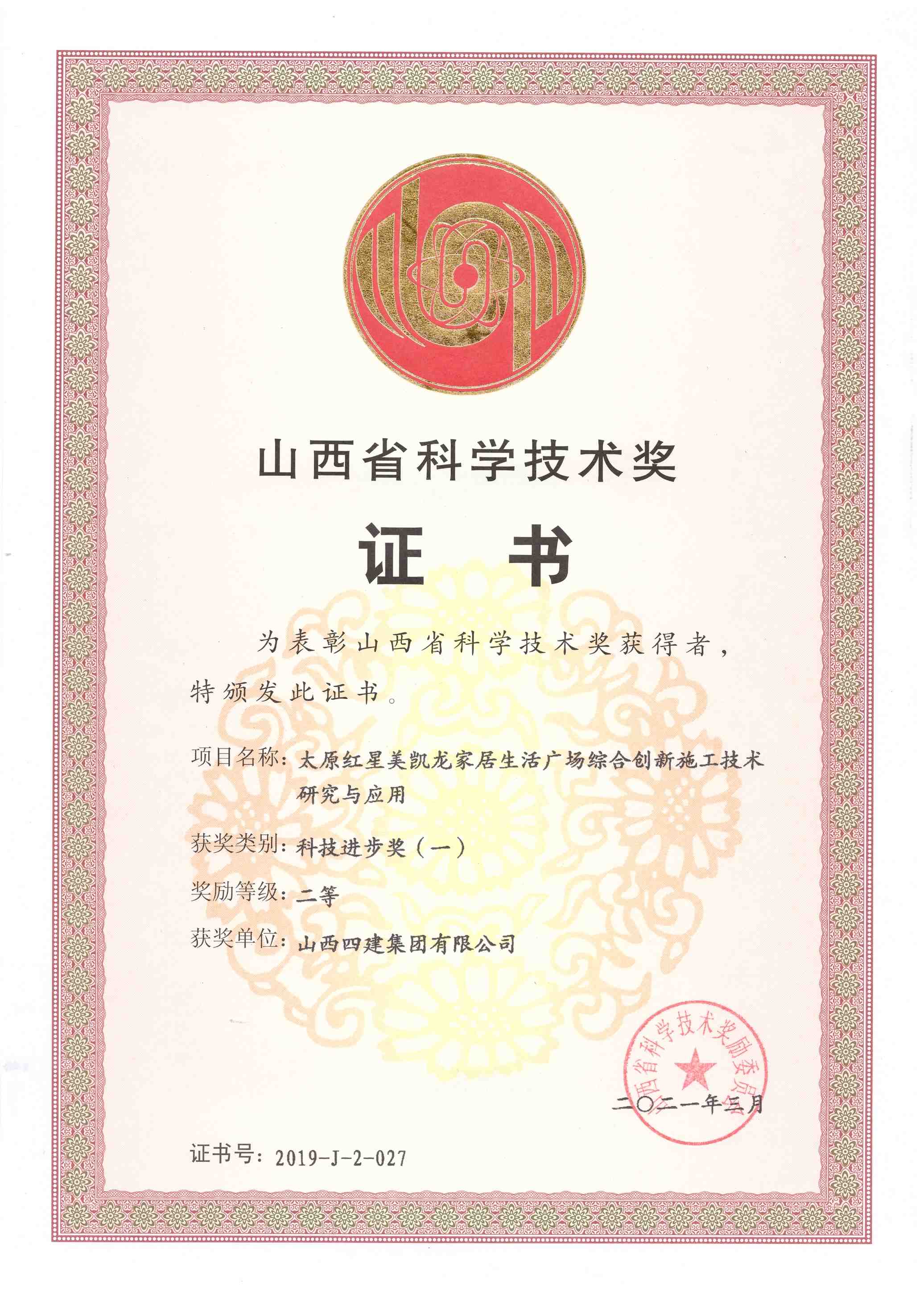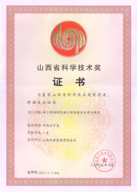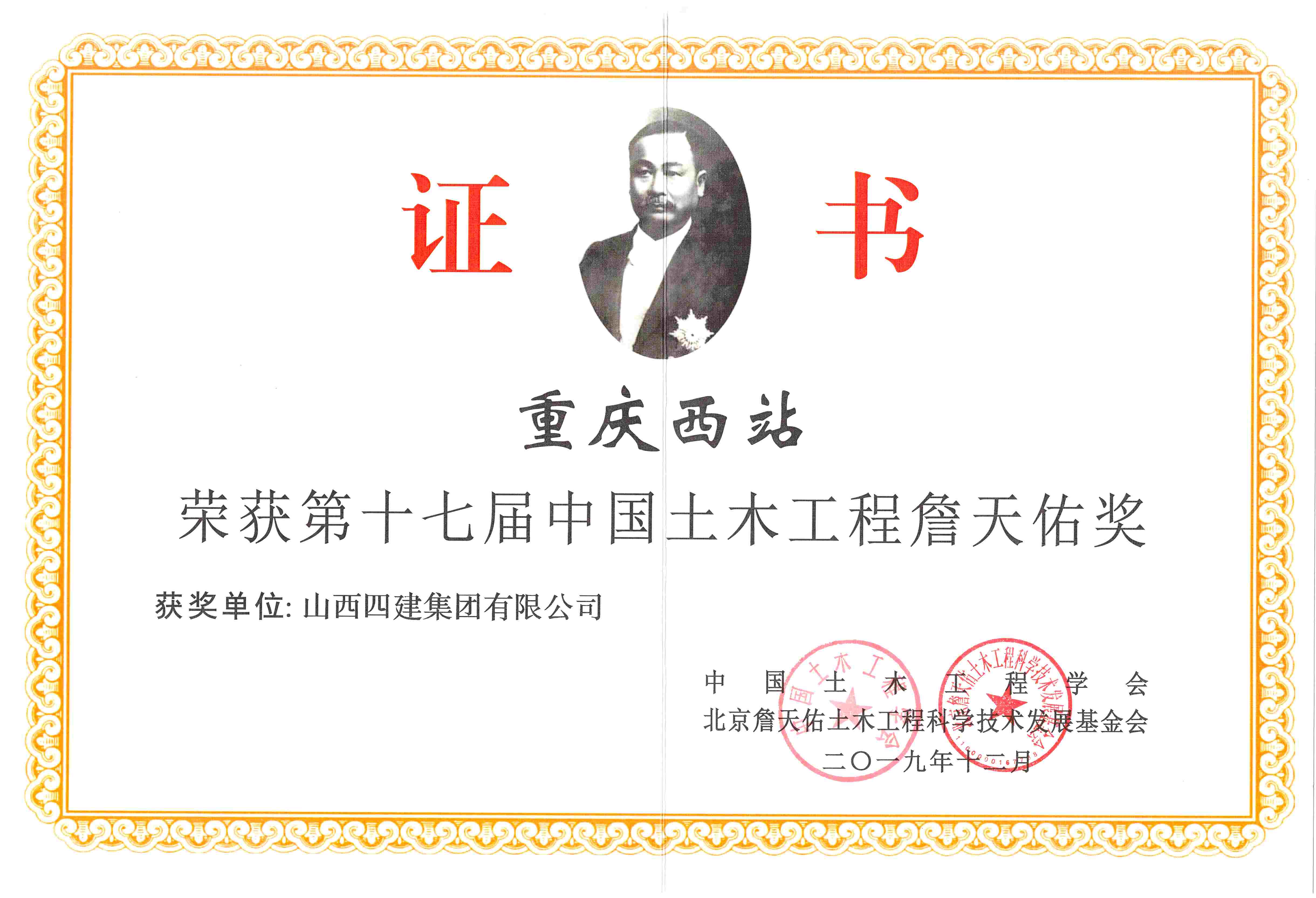 截止2021年底,公司共获“詹天佑”土木工程奖2项;詹天佑奖住宅小区奖3项;完成101项省级新技术应用示范工程,1项为全国新技术应用示范工程;有97项工程获得重庆市土木建筑工程科技创新最高荣誉——太行杯土木工程大奖;获重庆市科技进步二等奖2项,三等奖6项。