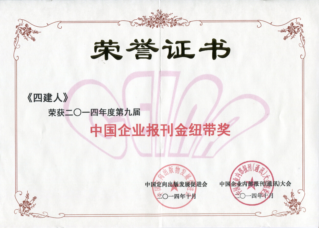 11月2日,在北京举办的“第九届中国企业内部报刊(通讯)大会暨经验交流会”上传来佳讯,公司内刊《贝斯特bst8888人》荣获2014年度第九届中国企业报刊金纽带奖和中国优秀企业建设传播奖(集体)。