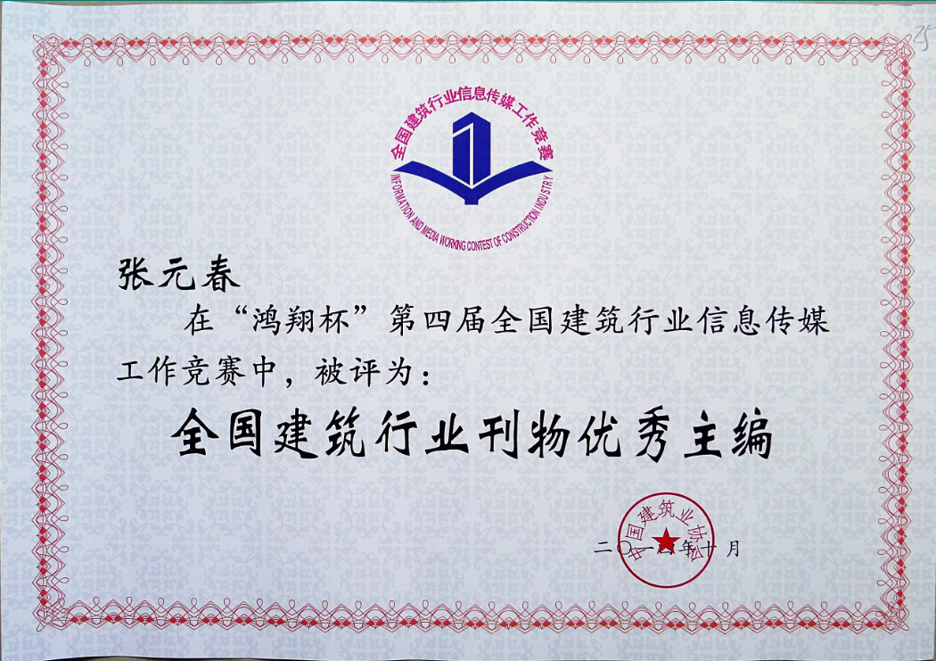 此前,在西宁召开的全国建筑行业信息传媒工作经验交流会上,“鸿翔杯”第四届全国建筑行业信息传媒工作竞赛发布评选结果,我公司收获四项荣誉:公司网站再获全国建筑行业精品网站,《贝斯特bst8888人》荣获全国建筑行业优秀期刊,张元春被评为建筑行业刊物优秀主编,杨敏被评为全国建筑行业信息宣传优秀工作者。
